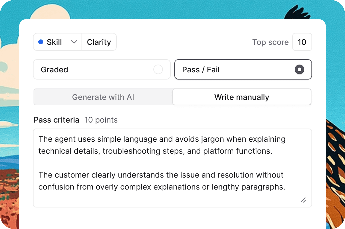 Create flexible, dynamic scorecards that grade every human and AI support interaction against your unique definition of quality.