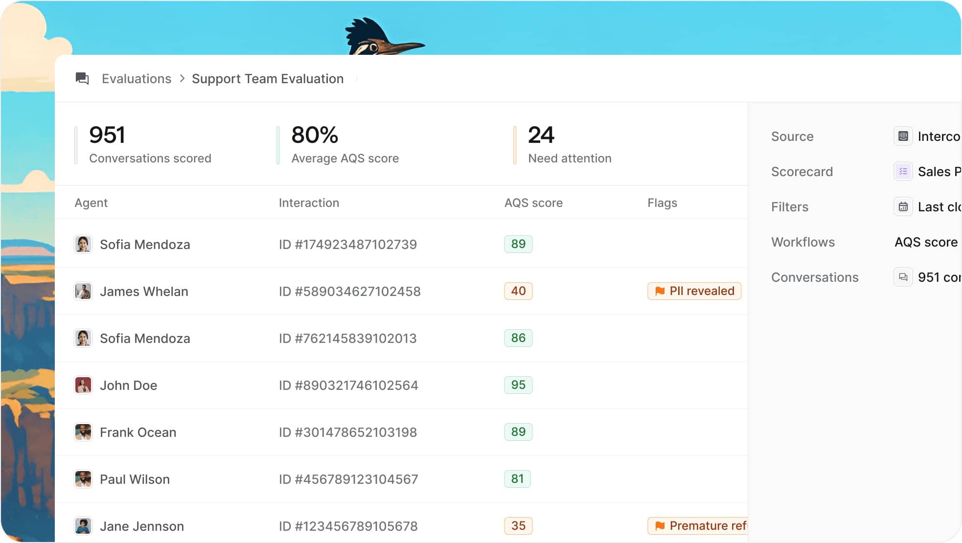Deploy custom QA scorecards aligned to company SOPs and knowledge base.