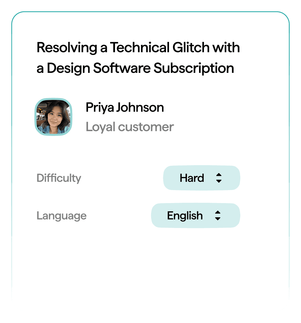 Generate limitless testing scenarios, personalized by difficulty, language, and channel.